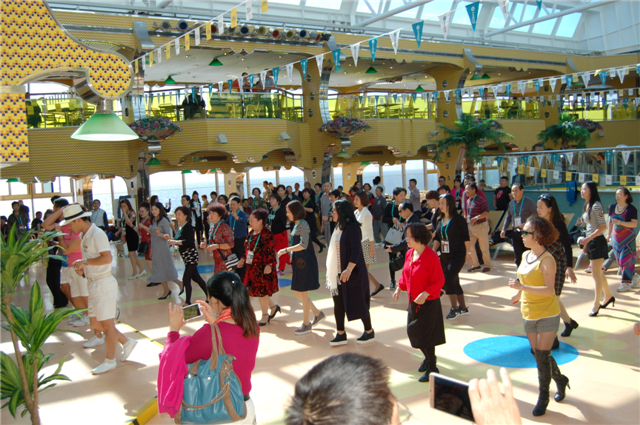 10日上午,歌詩達(dá)·賽琳娜號繼續(xù)暢游在太平洋上,而船艙內(nèi)的隆力奇家人們早已經(jīng)活躍在郵輪的各個角落:宙斯大劇院的千人旅游說明會議,萬神殿大堂精彩的意大利教學(xué)課程,日光泳池的晨間拉伸課程,阿波羅大酒吧的舞蹈教學(xué)課程,免稅購物區(qū)等,賽琳娜號以富麗輝宏的內(nèi)飾設(shè)計和精致完美的細(xì)節(jié)隨處吸引了喜歡自拍的隆力奇家人們。