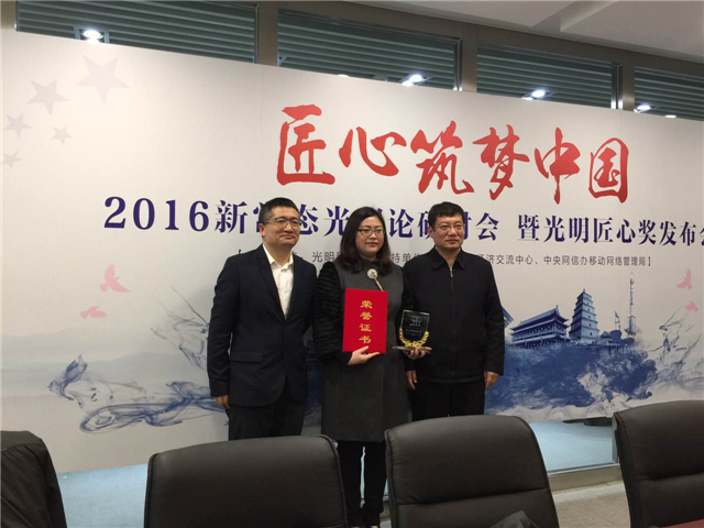 會議邀請中央網信辦相關領導、中國國際經濟交流中心相關專家以及2016光明匠心獎評審專家代表和獲獎單位代表共聚一堂。就2017年中國宏觀經濟發(fā)展態(tài)勢、供給側結構性改革以及振興實體經濟等話題進行研討,并見證以“勇于創(chuàng)新、精益求精、持之以恒、勇于擔責”為內涵的“光明匠心獎”的誕生,同時在本次會上也將隆重發(fā)布并頒發(fā)“2016光明匠心獎”。