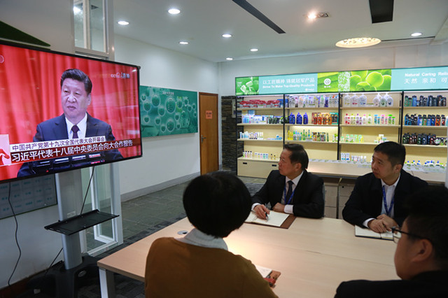 在全黨全國各族人民的熱切期盼中,黨的十九大于10月18日上午9時在北京人民大會堂隆重開幕。隆力奇黨委已走過20年春華秋實(shí),徐董親自攜全體黨員通過直播,認(rèn)真學(xué)習(xí)黨的十九大精神,共襄盛舉,共赴新征程。