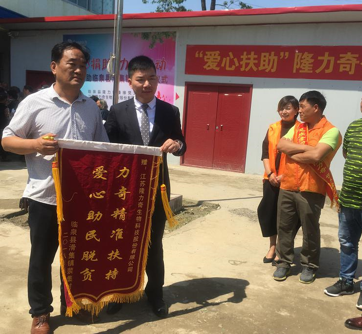 裴集村魏支書為隆力奇公司回贈錦旗,以示感謝
