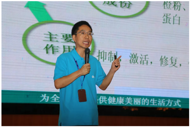 ▲隆力奇商學(xué)院高級講師洪彥飛作保健品系列功效講解