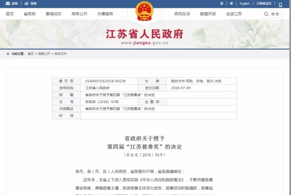 日前,從江蘇省人民政府文件(蘇政發(fā)〔2018〕92號(hào))獲悉:共有28家單位、27名個(gè)人和20個(gè)慈善項(xiàng)目受到江蘇省政府表彰,江蘇隆力奇生物科技股份有限公司被授予第四屆“江蘇慈善獎(jiǎng)”。這是隆力奇連續(xù)兩屆榮膺“江蘇慈善獎(jiǎng)”,也是繼“社會(huì)責(zé)任最佳實(shí)踐獎(jiǎng)”、“蘇州市慈善企業(yè)”、“慈善榜樣獎(jiǎng)”、2015中國食品企業(yè)履行社會(huì)責(zé)任十大優(yōu)秀案例、蘇州市“最具愛心企業(yè)”稱號(hào)后獲得的又一殊榮。