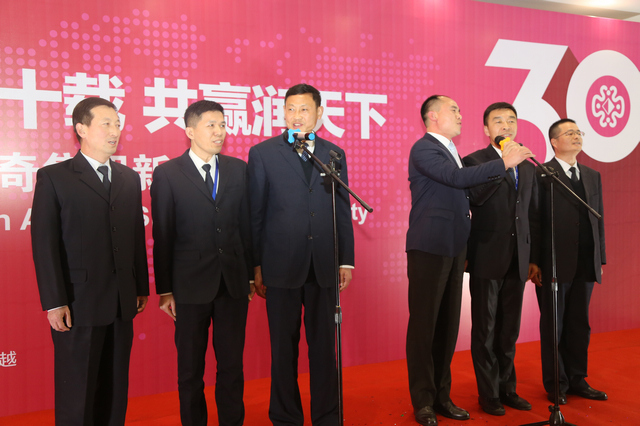 多才多藝的隆力奇人現(xiàn)場獻歌獻舞獻詩詞朗誦。辛莊鎮(zhèn)黨委書記丁琪帶領(lǐng)辛莊鎮(zhèn)領(lǐng)導班子也來到隆力奇年夜飯的現(xiàn)場,丁書記感謝隆力奇30年的堅守,感謝隆力奇人的堅守,表示辛莊鎮(zhèn)繼續(xù)為新辛莊人、為隆力奇人提供更便捷的軟硬件宜居配套設(shè)施服務。徐之偉董事長現(xiàn)場深情獻唱《把根留住》,這首歌徐董已經(jīng)唱了30年,感恩大家把根留在隆力奇,續(xù)寫百年隆力奇的輝煌?;顒釉诟卸?、祝福聲中圓滿落幕。