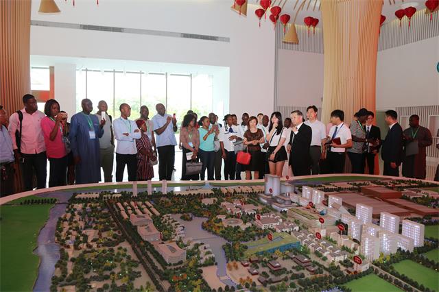 官員們參觀隆力奇養(yǎng)生小鎮(zhèn)沙盤(pán)模型