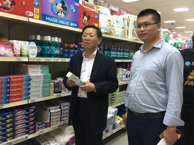 徐董考察拉各斯地區(qū)大型超市隆力奇產(chǎn)品排面陳列情況