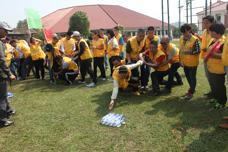 隆力奇?zhèn)鹘y(tǒng)事業(yè)部團(tuán)隊在到達(dá)預(yù)定場地——太湖綠光農(nóng)場后便開始了教官的“魔鬼式訓(xùn)練”。一場預(yù)熱活動首先進(jìn)行,在各成員舒展筋骨后,教官便開始了“破冰分組”,通過利用戶外活動的方式,讓大家快速適應(yīng)戶內(nèi)外結(jié)合的綜合訓(xùn)練模式,更專注的參與進(jìn)來。通過活動,大團(tuán)隊瞬間演變?yōu)榱怂膫€全新的小分隊——“果酸隊”、“削蘋果隊”、“烈火隊”、“戰(zhàn)狼隊”。各隊現(xiàn)場取名,設(shè)定口號,確定戰(zhàn)歌,然后進(jìn)行現(xiàn)場展示,一場勢如破竹的團(tuán)隊PK戰(zhàn)由此正式展開。通過《群龍取水》、《生死電網(wǎng)》等一系列團(tuán)隊活動,各團(tuán)隊成員間的感情迅速升溫,合作更加默契,彼此信任感急劇增加。